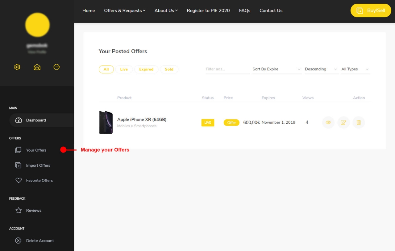 Finally check the “I agree to the terms & conditions” option and press save to publish your offer. Your offer is created and published for 60 days. You can manage (edit or delete) your offers from the section “Your Offers” located on the left sidebar at your Account Dashboard.